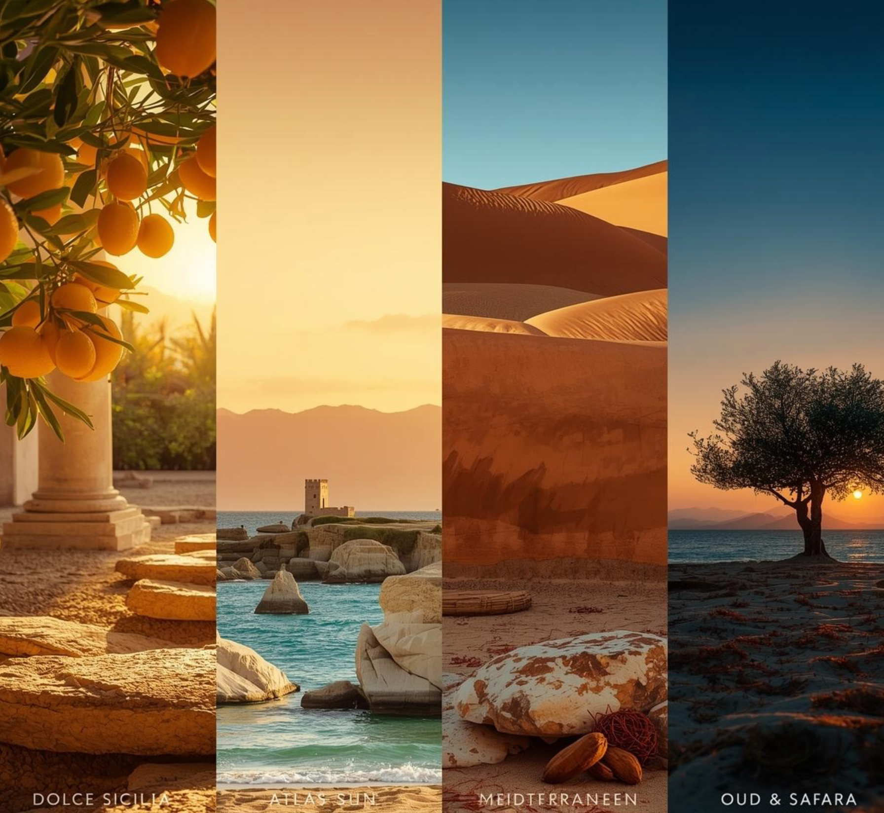 Élixirs parfumés inspirés des oliviers, agrumes et brises marines.